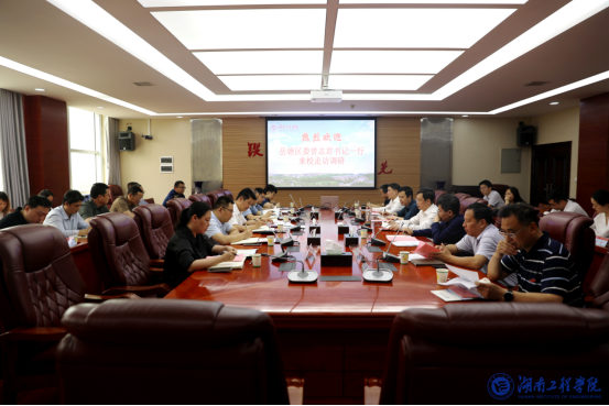 近日,岳塘区委书记、岳塘经开区党工委书记曾志君走访我校,就加强校地合作、校园及周边环境治理等开展调研。区领导唐俊杰、高蒙、蒋玉等,校党委书记黄昕,校党委副书记、校长易兵,党委委员、副校长张小刚、魏克湘出席。