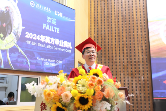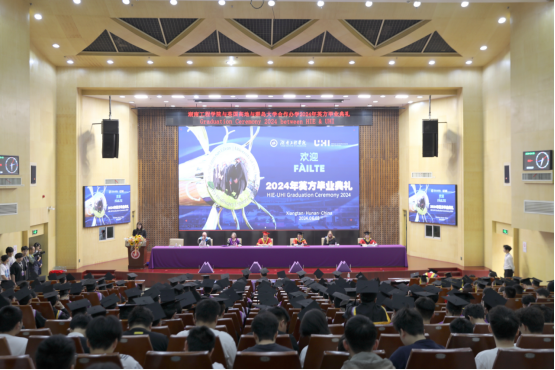 我校与英国高地与群岛大学(以下简称UHI)双方校领导,国际教育学院、电气与信息工程学院、机械工程学院及相关部门负责人,合作办学项目专业教师,国际教育学院2024届毕业生、部分家长及低年级学生代表欢聚一堂,共同见证我校与UHI合作项目2020级电气工程及其自动化和机械设计制造及其自动化两个本科专业共217位学生获得UHI学士学位。