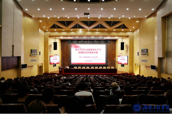 6月4日下午,校党委副书记、校长易兵以《奋力书写为发展新质生产力挺膺担当的青春华章》为题,在一报告厅为电气与信息工程学院、材料与化工学院、管理学院、建筑工程学院、设计艺术学院近四百名学生上了一堂深刻而生动的思政课。