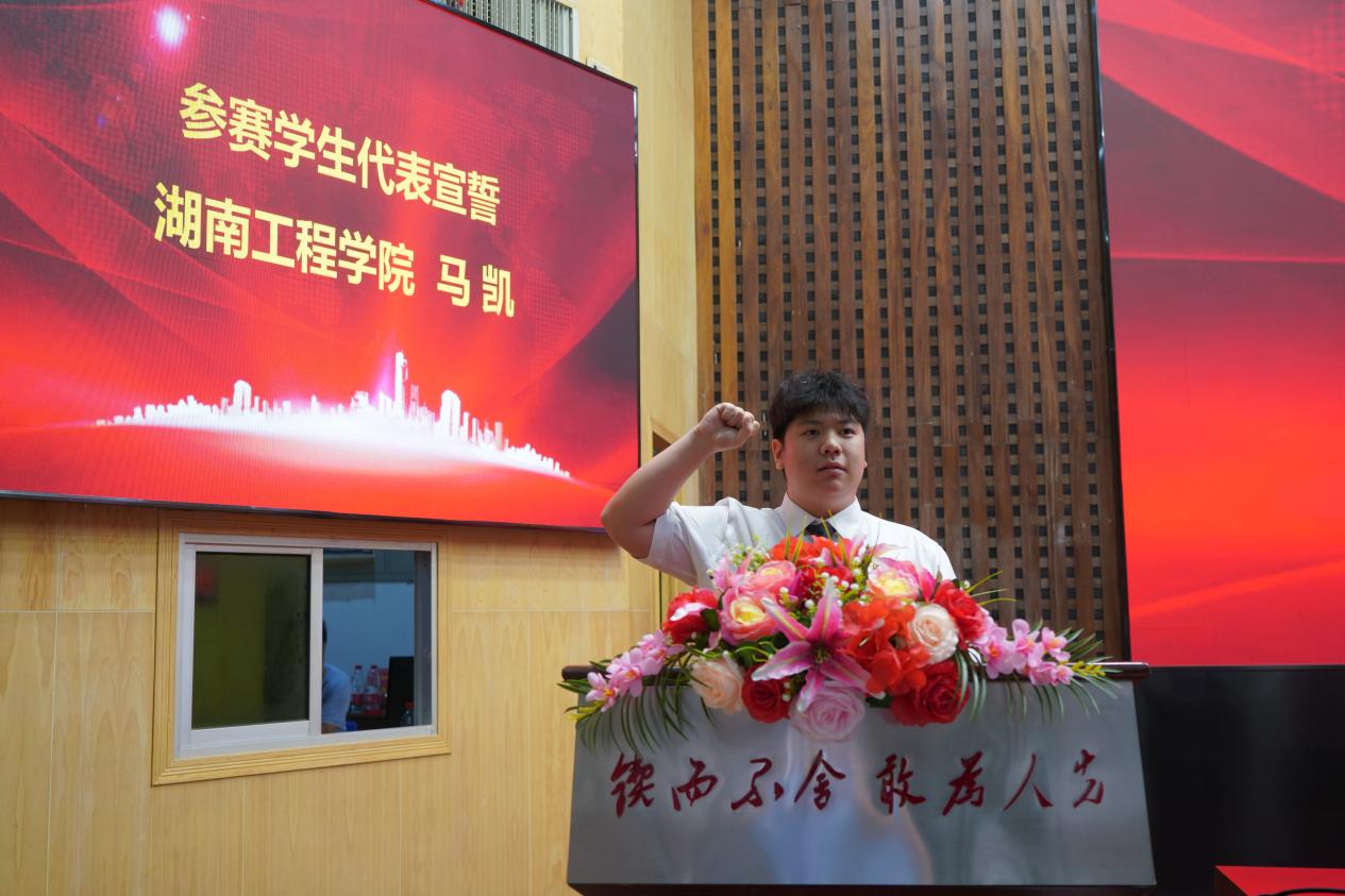 随后,参赛学生代表马凯、评委代表陈辉分别进行宣誓。
