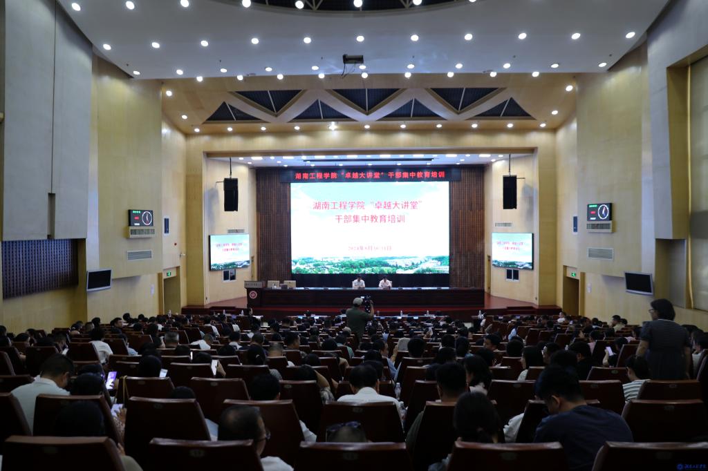 8月30日下午,我校2024年第三季度“卓越大讲堂”干部集中培训第四讲在一报告厅举行。湖南开放大学党委书记龙献忠应邀作《聚焦治理体系和治理能力 助力学校高质量发展》专题报告。校党委书记黄昕,党委副书记、校长易兵出席。黄昕主持报告会。全体校领导、中层干部、科级干部、岗位负责人、教研室(实验中心)主任和党支部书记参加学习。