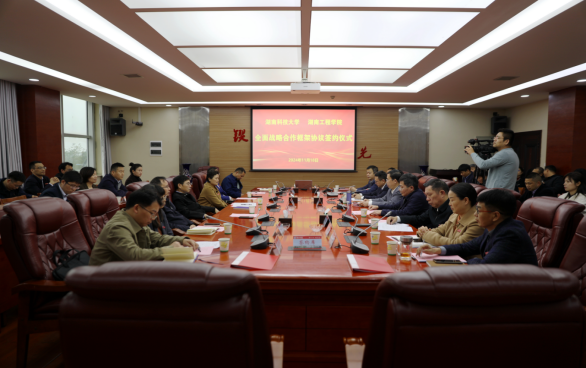 11月18日下午,我校与湖南科技大学在电气楼311会议室签订全面战略合作框架协议。湖南科技大学党委副书记、校长蒋丽忠,党委委员、副校长李琳,副校长刘建勋,我校党委书记黄昕,党委副书记、校长易兵,全体校领导等参加签约仪式。党委委员、副校长罗毅平主持仪式。