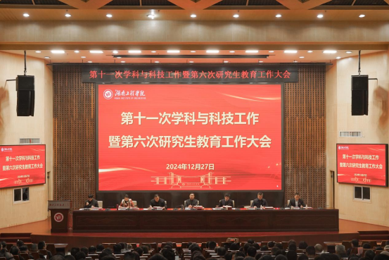 12月27日上午,我校在一报告厅召开第十一次学科与科技工作暨第六次研究生教育工作大会。本次大会旨在总结经验、把握形势、明晰目标、谋划举措,为高质量服务我省“三高四新”美好蓝图展现更大担当和新的作为,为全面建成特色鲜明、贡献突出的一流工程应用型地方大学而团结奋斗。党委书记黄昕,党委副书记、校长易兵,在校校领导出席,党委委员、副校长魏克湘主持大会。