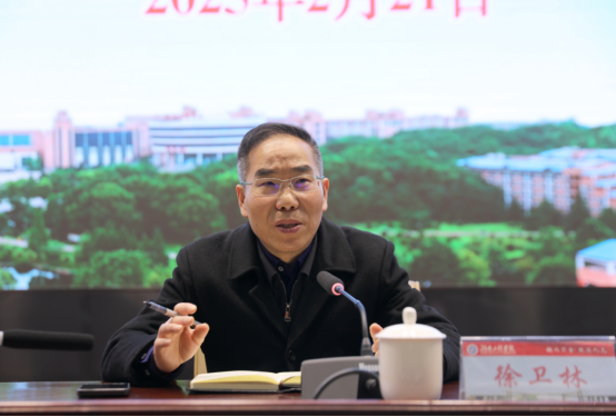 人勤春来早,奋斗正当时。新学期伊始,2月21日至22日我校在一报告厅举办2025年第一期“卓越大讲堂”干部集中教育培训,为学校全体干部“充电蓄能”,补足精神之钙。21日上午,中国工程院院士,武汉纺织大学党委副书记、校长徐卫林以《一般地方高校的困境与创新实践》为题作第一场报告。报告会由我校党委书记黄昕主持。党委副书记、校长易兵,全体校领导、中层干部、科级干部、岗位负责人、党支部书记、教研室(实验中心)主任和专职辅导员参加培训。