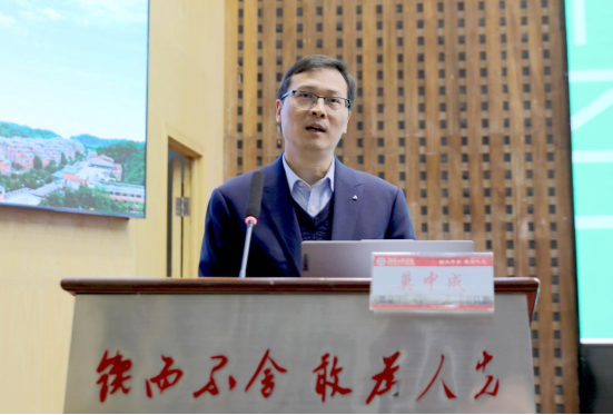 2月22日上午,我校“卓越大讲堂”干部集中教育培训第五场专题报告会在图书馆一报告厅举行。桂林医科大学教务处副处长莫中成教授以《智能医学与医工融合专业建设的机遇与挑战》为题作专题辅导报告。我校全体校领导、中层干部、科级干部、岗位负责人、教研室(实验中心)主任和党支部书记等参加培训。我校党委委员、副校长魏克湘主持讲座。