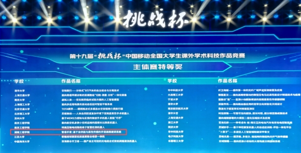据悉,“挑战杯”全国大学生课外学术科技作品竞赛历经三十余年的发展与积淀,已成为国内规模最大、层次最高、影响力最广的大学生科技创新竞赛,被誉为中国大学生科技创新的“奥林匹克”。此次参赛获特等奖,是我校创新创业教育成果的一次集中展示,将进一步激励广大学生投身学术科技创新实践。