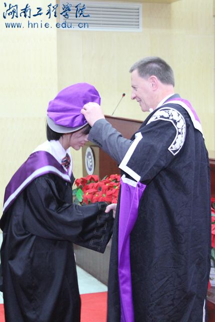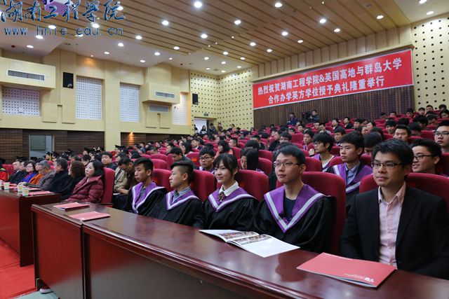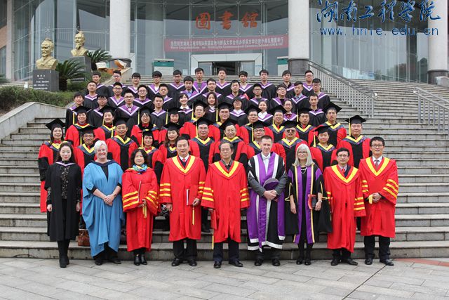 我校是湖南省最早开展国际交流与合作的高校之一,先后与澳大利亚泰福学院(TAFE)、堪培拉大学、南昆士兰大学和英国西苏格兰大学、英国高地与群岛大学等校开展合作办学。该项目内学生第一、二年学习专业基础课和英语类课程,第三学年全面引进英方课程和教学资源,采取与英方国内同步的专业课程学习和考核,顺利完成前三年学习的学生可以获得英国高地与群岛大学学士学位。在获得此学位之后,第四年还可以赴英国进行学习和深造。三年全部在国内院校就读,即可获得国外大学学士学位,这在湖南省是首例,在全国也是屈指可数。这次盛会是一场别开生面的具有异域风情的盛大仪式,是我校合作办学史上一曲新的华章。