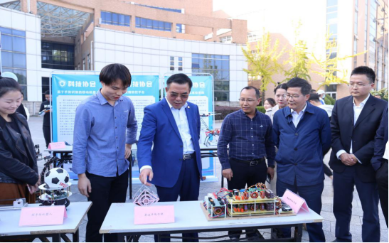 开幕式后,陈岳堂、易兵来到知行广场的社团嘉年华展示区,在科技协会、爱心社、汉服社、DIY手工协会等社团展台前驻足观看,仔细询问了各社团发展情况,了解学生群体志愿服务建设,参观特色文创产品。我校共有59个社团,分为文体艺术型、志愿服务型、学术科技型、理论学习型四个类型。经过多年的迅速发展,学校社团在繁荣校园文化,搭建育人平台等方面发挥了积极的作用,成为广大学生开展自我教育、自我管理、自我服务的重要阵地,成为学校人才培养的新载体。