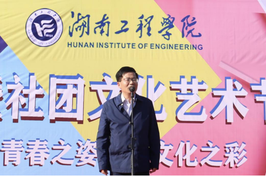 11月10日下午,我校2020年“高举团旗跟党走 奉献青春创佳绩”校园文化暨社团文化艺术节开幕式在主校区知行广场举行。校党委书记陈岳堂、校长易兵、副校长李军林以及相关职能部门、各教学院负责人与800多名学生欢聚一堂,共享视听盛宴。