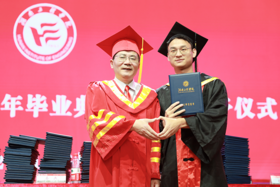 “相聚湘江之滨,踏着伟人足迹……”熟悉的校歌旋律响起,全场毕业生齐唱校歌,为毕业典礼、也为在湖工的求学生涯画上了圆满句号。