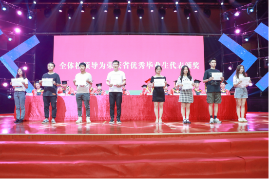 毕业典礼上,彭立威宣读《关于表彰2021届优秀毕业生的决定》。全体校领导为湖南省优秀毕业生代表颁奖。