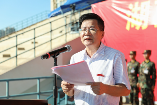 党委委员、副校长张小刚主持开学典礼,作军训动员报告