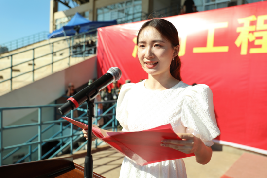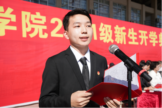 在校学生代表电气与信息工程学院自动化1904班的高飞同学给新生分享三点经验:明确目标,勤学善思;锲而不舍,敢为人先;提升自我,筑梦青春。材料与化工专业研究生王丽蓉作为新生代表发言,她表示将和同学们一道为理想执着追求,以热情拥抱学习和生活,不负青春、不负韶华,珍惜时光,努力前行。