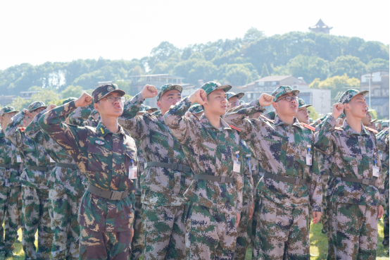 军训团教官代表段雨露和参训新生代表李茂湘先后发言,段雨露表示,将认真履行教官职责,时刻保持良好的军人姿态,严格要求自己,精心组织、科学训练、文明施教。李茂湘号召全体新生服从命令,听从指挥,磨炼意志,苦练基本功,团结互助,共同拼搏,以严肃认真的态度,高标准、高质量地完成好本次军训。