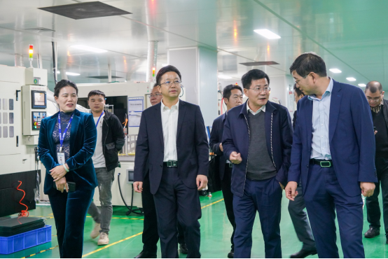 易兵及湖工校友企业家一行在谢岸烨、谢志宏的陪同下先后考察了湘乡市人民医院区域影像中心项目(由我校陈军校友开发)、湘乡市电力产业园、湘乡电力建设有限公司、湖南振添光学玻璃科技有限公司、湖南湘君电子科技有限公司、湖南维泰科技有限公司,与公司领导和项目负责人进行了深入交流。