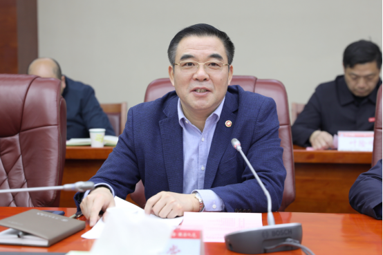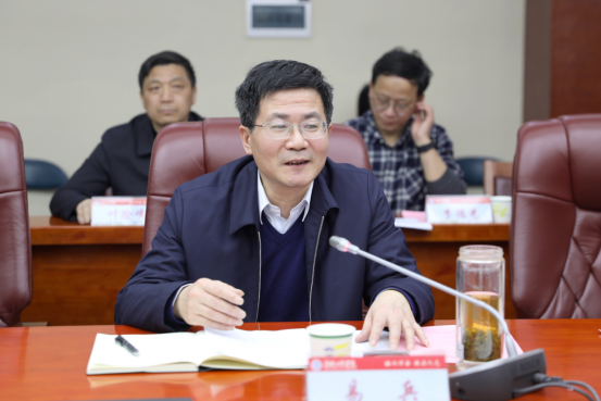 陈岳堂简要介绍了我校的基本情况、办学特色和优势。他表示,我校70年的发展离不开岳塘区的支持,湖工与岳塘区联系紧密、缘分深厚,希望岳塘区委、区政府进一步加强校地合作共建共享,支持我校加快纺织大楼选址建设,改善学校周边交通生活环境,助力双方共同发展、互利共赢。未来,学校将一如既往地发挥科研、人才等优势,拓展合作领域,为岳塘区的发展留下更多的人才,提高毕业生“留潭率”,为岳塘区高质量发展贡献力量。
