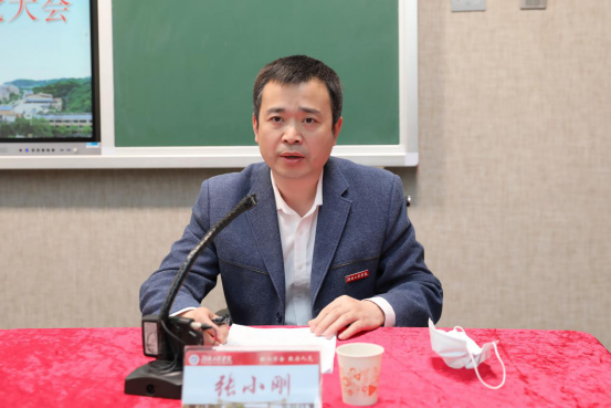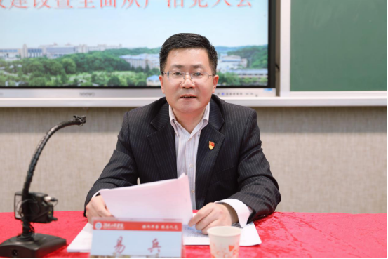 4月7日下午,学校召开2022年党建与思政工作、平安高校建设暨全面从严治党大会,全面总结2021年党建与思政工作、纪检监察工作、平安高校建设工作,统筹部署2022年工作。因疫情防控需要,此次大会在教学楼A座502设主会场,一报告厅、一会议室、二会议室、各学院设分会场。党委书记陈岳堂作党建与思政工作报告,党委委员、纪委书记齐路良作纪检监察工作报告,党委委员、副校长张小刚作平安高校建设工作报告。会议由党委副书记、校长易兵主持,全体校领导、党委委员、中层干部、专职组织员、党支部书记、科长(岗位负责人)、学生辅导员参加。