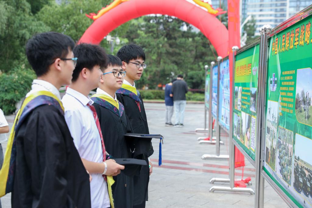 宣讲活动结束后,学校人民武装部在会场前坪设立咨询台摆放宣传展板,通过发放宣传手册、悬挂横幅、现场咨询等形式向同学们解答问题。