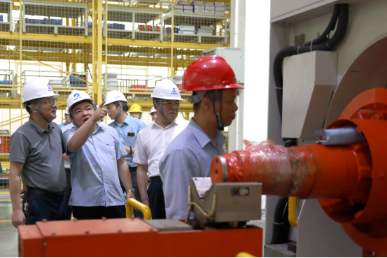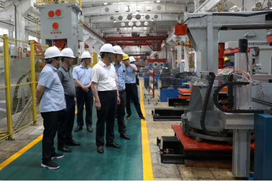 陈岳堂、易兵一行走进湘电展示馆,了解企业建设发展史和湘电企业文化,并详细询问企业研发创新、科研合作、人才需求等情况。在智慧车间和重型装备车间,大家看到车间内的自动化生产线一派繁忙景象,切实感受到了企业在技术创新、数字化、智能化转型升级等领域所取得的新成效。