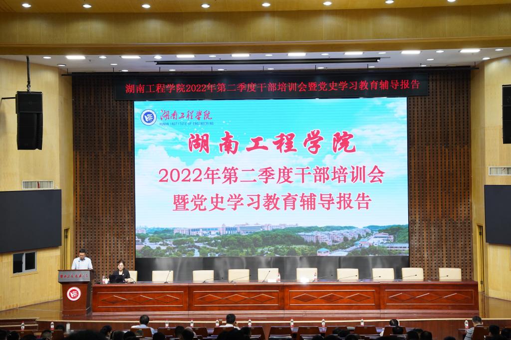 为持续提升我校党员干部能力素质,推动党史学习教育常态化长效化建设,学校举行“汲取党史力量、坚持理想信念”第二季度干部培训会暨党史学习教育集中培训。6月7日下午,学校特邀请湖南省委党校、省行政学院王蔚教授以“社会主义发展的回顾与展望”为题作辅导报告,在家校领导、党委委员,中层干部,科级干部(岗位负责人)在一报告厅参加学习。党委委员、副校长罗毅平主持报告会。