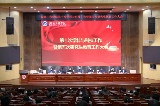 12月15日上午,学校在一报告厅召开第十次学科建设与科技工作暨第五次研究生教育工作大会,全面总结我校过去两年在学科建设、科技工作、研究生教育工作等方面取得的成绩,部署下一阶段工作和发展举措,为高质量服务湖南省“三高四新”战略定位和使命任务展现更大担当和作为,为建成特色鲜明高水平工程应用型大学团结奋斗。党委书记陈岳堂,党委副书记、校长易兵,在家校领导出席,党委委员、副校长魏克湘主持大会。中层干部正职、省校级学科带头人、研究生导师、研究生任课老师、博士代表、教师代表、学科与科研岗位负责人、学位点秘书、研究生代表、获奖代表等参加。