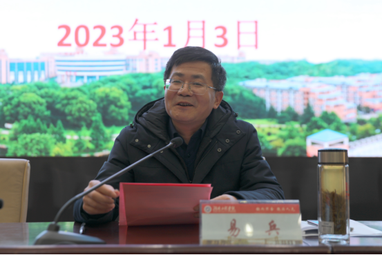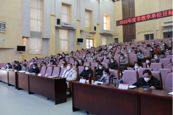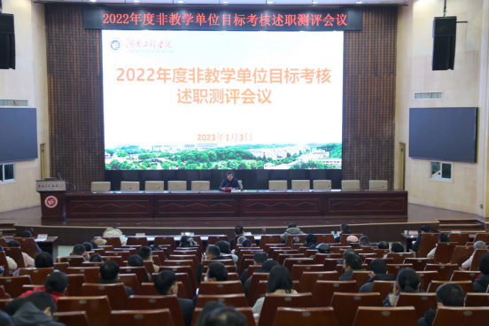 1月3日下午,我校2022年度非教学单位目标考核述职测评会议在一报告厅举行,全体校领导、中层干部、教职工代表、党外人士代表参加。党委副书记、校长易兵主持会议。