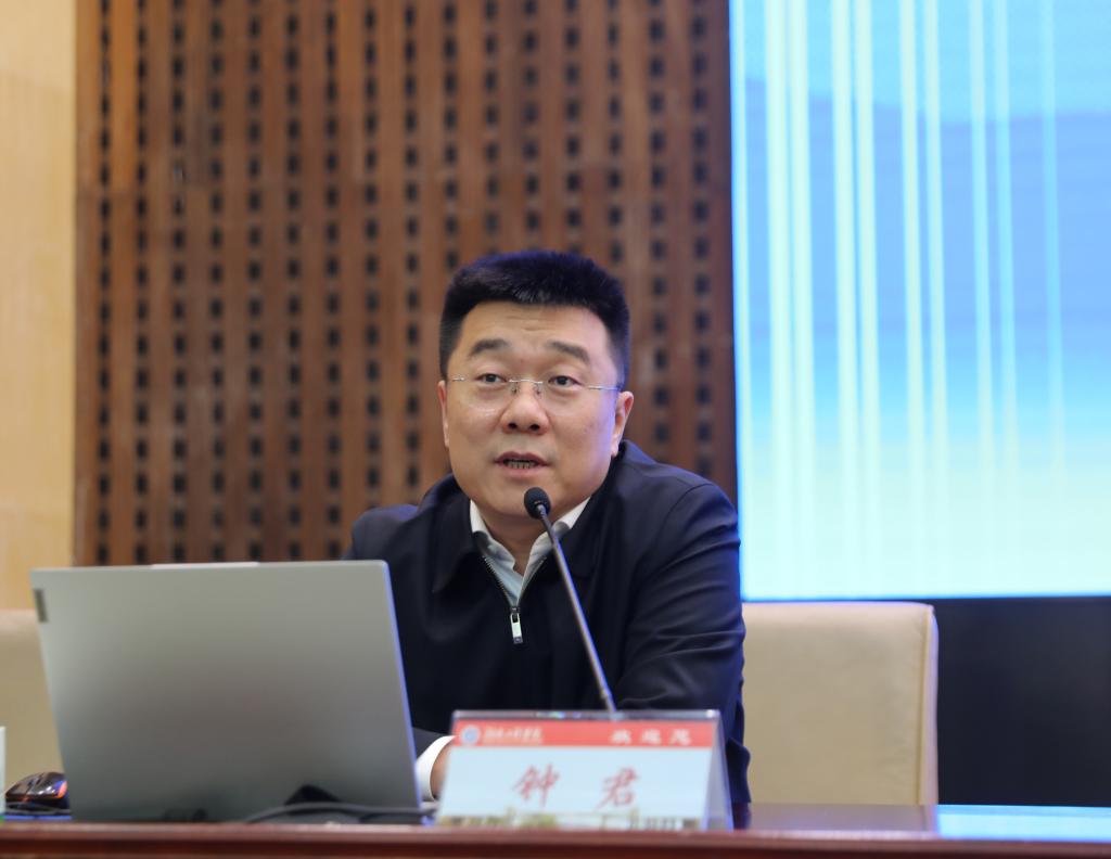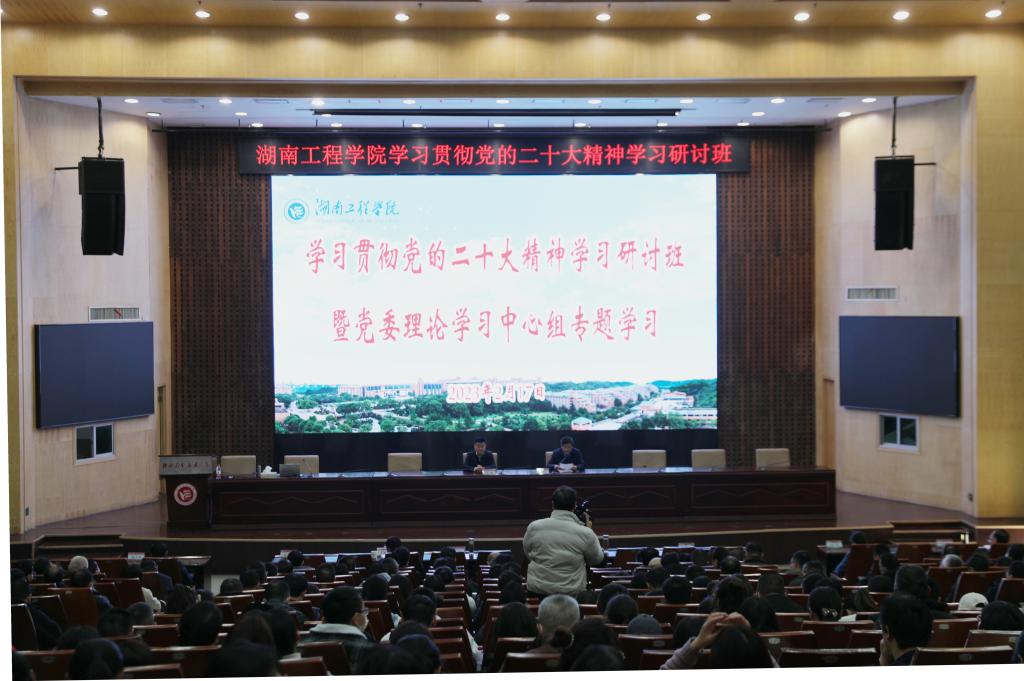 2月17日下午,我校学习贯彻党的二十大精神学习研讨班第六讲暨党委理论学习中心组第三次集中学习会在一报告厅,培训邀请湖南省社科院党组书记、院长钟君来校作主题为“开辟马克思主义中国化新时代新境界”的专题辅导报告。校党委副书记、校长易兵主持报告会。在校校领导、党委委员、中层及以上干部,科级干部、岗位负责人,辅导员、马克思主义学院全体教师,专职组织员参加学习。