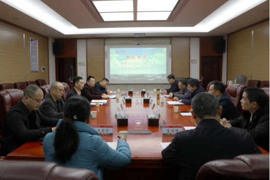 2月28日上午,湘潭市人民政府副市长丁诚一行来校调研我校校友回潭招商引资工作。校党委副书记、校长易兵出席并主持座谈会,湘潭市人民政府副秘书长郭晓春、湘潭市商务局二级调研员王维,校党委委员、副校长魏克湘,正校级督导员娄炳林,科技处、校友联络中心相关负责人参加。