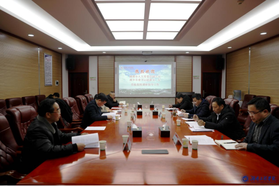 为进一步推进校地、校企合作,12月18日上午,湘潭市人大常委会副主任、湘乡市委书记赵新文一行来我校调研。校党委副书记、校长易兵,校党委委员、副校长魏克湘接待赵新文一行并陪同调研。
