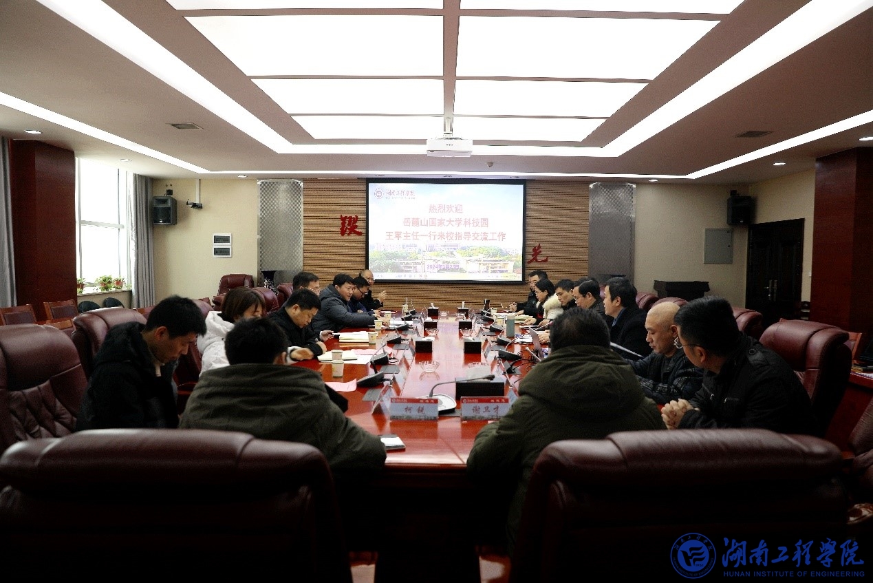 1月23日上午,长沙留学人员创业园(长沙高新区创业服务中心)主任、岳麓山国家大学科技园管理办公室常务副主任王军,长沙高新区创业服务中心副主任姚峰,岳麓山国家大学科技园公司总经理吴勤一行来我校交流洽谈合作事宜。校党委书记黄昕,校党委委员、副校长张小刚在二会议室接待来宾。双方就合作事宜展开深入交流。