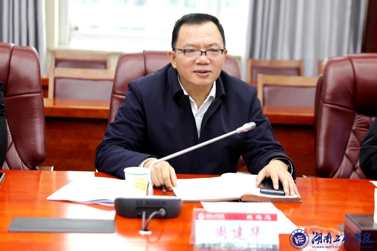 黄昕介绍了学校办学历程、办学特色和优势,重点介绍了我校深入实施校企合作,新工科办学显著的成效。黄昕指出,我校科技成果转化率位列省属高校前5,转化金额位列全国高校前100名;“百名博士下企业”行动计划取得明显成效,得到湖南卫视等多家权威媒体报道;我校培养了2名院士和全国劳动模范等著名人物。黄昕表示,我校紧紧围绕特色鲜明、国内一流的工程应用型地方大学建设目标,持续深化教学改革,积极探索卓越工程师培养。目前我校正在实施五大研究院建设改革,聚焦科技创新力,着力提升学科建设实效,将深入推行“百名博士下企业”计划,进一步激发我校教师创新实践能力,服务地方和国家经济建设。