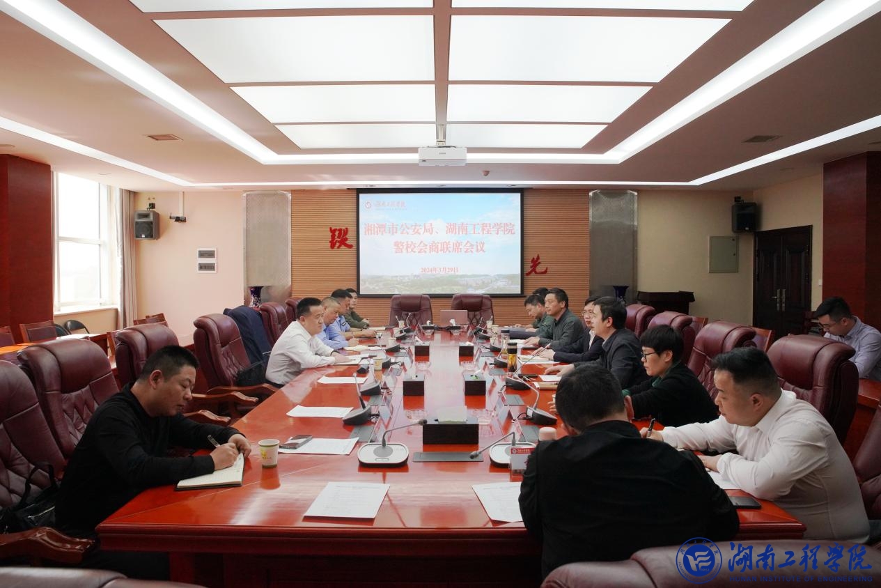为全面推进警校会商工作,着力营造平安、有序、和谐的校园环境,3月29日下午,湘潭市公安局党委委员、副局长贺剑鹏带队深入我校调研,并在二会议室召开警校会商联席会议,会商促进我校安全稳定相关工作。校党委书记黄昕,党委委员、副校长张小刚出席。