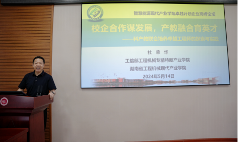 电气与信息工程学院副院长吴迪作题为《湖南省智慧能源现代产业学院》主题报告。吴迪表示,现代产业学院将探索多主体共建共管共享的协同育人机制,调整优化专业结构,重构人才培养体系,以高素质、应用型、复合型、创新型人才为目标,打造集产业生态与教育于一体的合作共赢机制,着力建设国内标杆、综合性、国际化的现代产业学院。