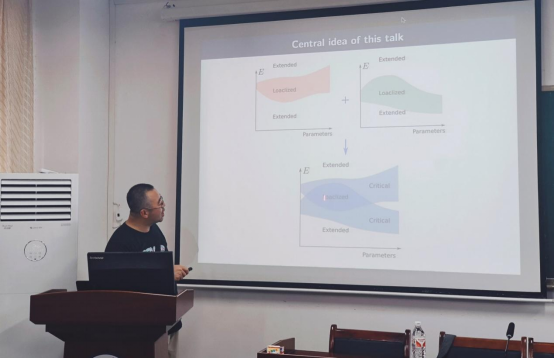 6月30日下午,中国科学技术大学龚明教授应我校计算科学与电子学院邀请来校,在F205会议室作题为《准周期模型中的安德森局域化和临界相》的学术报告。学科建设与改革发展处处长邓永和、计算科学与电子学院副院长陈桥、物理学科成员、部分研究生参加学习交流。报告会由陈桥主持。