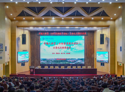 为深入推进学校“135工程”之“强管理”行动计划,进一步提高各二级单位办公室人员公务接待礼仪水平,以及更好地完成本科教育教学审核评估工作,12月6日下午,我校在一报告厅举行“卓越大讲堂”——公务接待礼仪(女性素质提升讲坛)培训。长沙理工大学原党委委员、副校长、湖南省公民礼仪素质研究基地首席专家蒋璟萍教授应邀主讲,讲座由党委副书记向前主持。