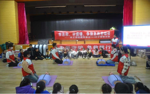 活动在育才学校报告厅启动。主持人以“生命的黄金四分钟”为切入点,迅速点燃了现场师生的热情。育才学校144班冯桑老师表示,急救知识的传授不仅是技能培养,更是对生命敬畏之心的传递,此次活动是知识的传承,也是雷锋精神的延续。