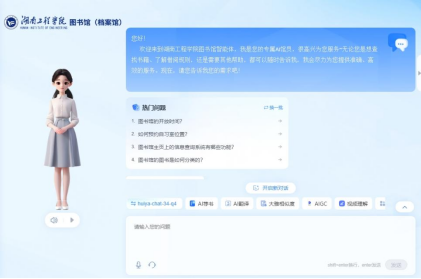 AI馆员是图书馆智慧化建设一期项目的重要组成部分,是我校提升信息素养教育的关键支撑。图书馆将秉持三馆育人的理念,持续保障图书馆智慧体系与教育教学的深度融合,不断更新优化平台功能,助力学校“135工程”高质量发展,打造具有卓越工程特色的数字化服务样板。