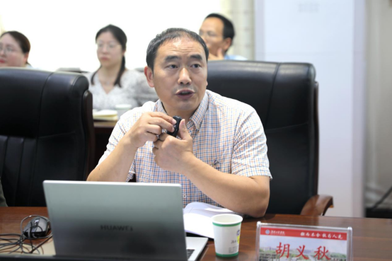 我校心理健康教育与咨询中心主任蒋淑亚通报了湖南省优秀思政工作者--“五彩阳光”团队建设项目”的建设进展,双方就如何开展高校心理健康教育工作进行了探讨。胡教授表示,心理危机干预中的团队建设要以理论为支撑,结合学校发展特点,与学校人才培养相匹配,凝练亮点,突出团队建设目标的特色。学工部部长徐粤宇表示,本次研讨深化了与会老师对积极心理学及心理健康的认识,希望双方团队能建立长期合作,携手守护大学生的心理健康和思想健康。