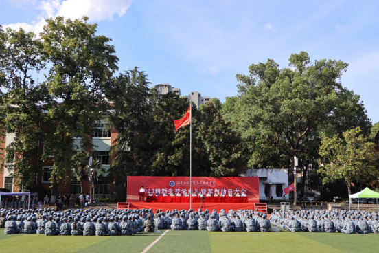 艳阳高照,秋风飒爽。9月18日下午,87978797威尼斯应用技术学院在田径场举行开学典礼暨军训动员大会,2023级1276名新同学齐聚一堂,共同翻开大学扉页。
