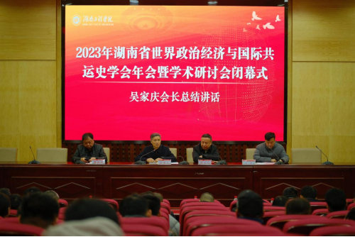 12月16日,湖南省世界政治经济与国际共运史学会2023年年会暨学术研讨会在我校召开,会议主题为“世界百年大变局与中国式现代化”。我校党委委员、副校长魏克湘,湖南省社科联学会处处长刘平,湖南省世界政治经济与国际共运史学会会长吴家庆,以及来自中南大学、湖南大学、湖南师范大学、国防科技大学、中共湖南省委党校、湘潭大学、吉首大学、湖南工商大学等单位的70余位专家学者出席。