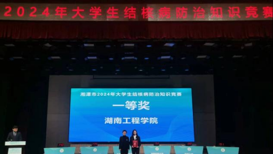 3月23日上午,2024年湘潭市防治结核病日宣传活动进校园启动仪式暨大学生结核病防治知识竞赛在湘潭大学举行。我校电气与信息工程学院电气工程及其自动化2021级学生刘辉旺、经济学院金融工程2021级学生江周宇、材料与化工学院应用化学2021级学生任雨凡三名学生参加竞赛。