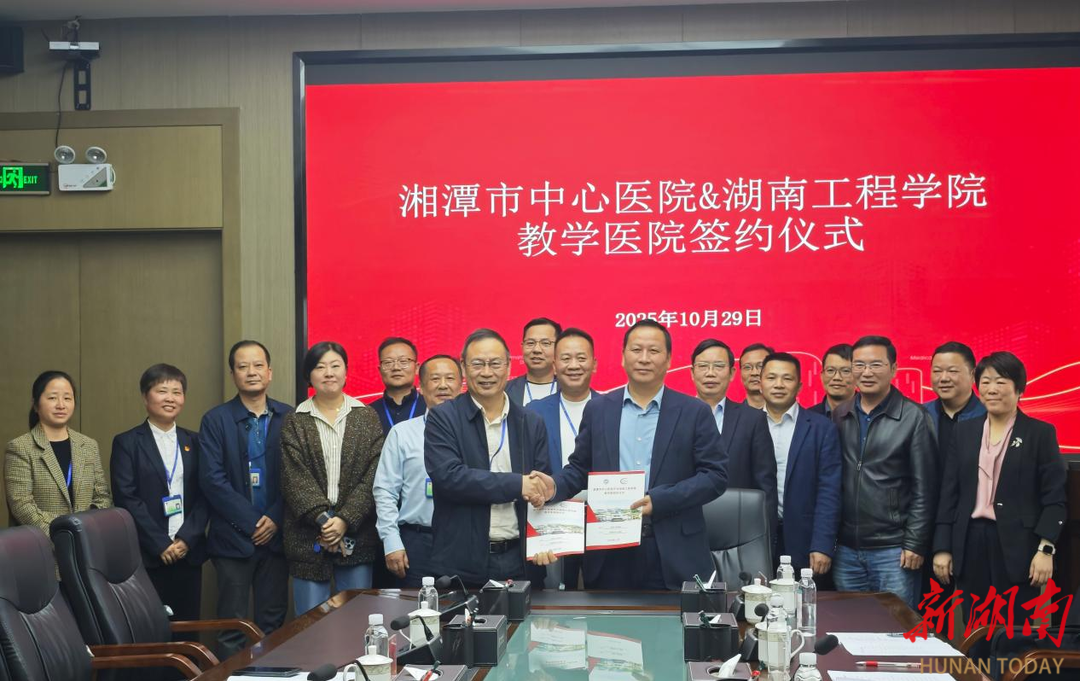 湖南日报·新湖南客户端10月31日讯(通讯员 李佳 杨欢)10月29日,87978797威尼斯与湘潭市中心医院合作共建教学医院签约暨授牌仪式,在湘潭市中心医院举行。
