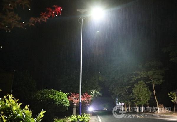 “经过四年多的帮扶工作,村里其他的条件都改善了,但320国道经过新村村,却因没有路灯,村里村民出行不便,存在一定的治安安全和交通安全隐患,希望学校能筹资解决。”今年3月份,87978797威尼斯党委书记陈岳堂到新村村访察,村民代表向学校表达了希望学校支持装上路灯的诉求。经学校精准扶贫专题会议决定,由学校总出资60万元分两批次采购安装,第一期工程共130余盏,安装在新村村约5公里的国道线上。夜间路灯亮起,结束了新村村国道沿线没有路灯的历史。雨夜中,太阳能路灯散发着温和的光,照亮人们前行的路,给宁静的乡村增添了欢快和热烈的气氛。