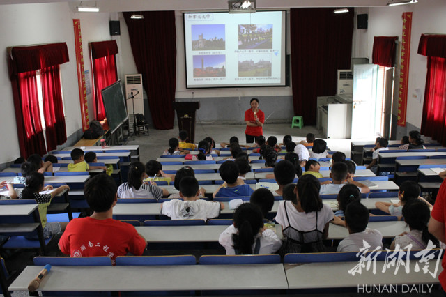 新湖南湘潭频道7月11日讯(通讯员 熊龙英)“第一次参加‘三下乡’社会实践,农村的孩子接触外面的世界相对少一些,我的想法就是想我在海外学习的所见所闻分享给这些大山深处的孩子们。”近日,湖南工程暑期社会实践团赶赴该校的定点扶贫村——湖南省新晃侗族自治县新村开展暑期社会实践活动。刚从加拿大访学归国不久的电气信息学院副院长胡慧博士参加到这支“三下乡”队伍中来,她的“任务”是带着大山里的孩子“放眼看世界,共话地球村。”
