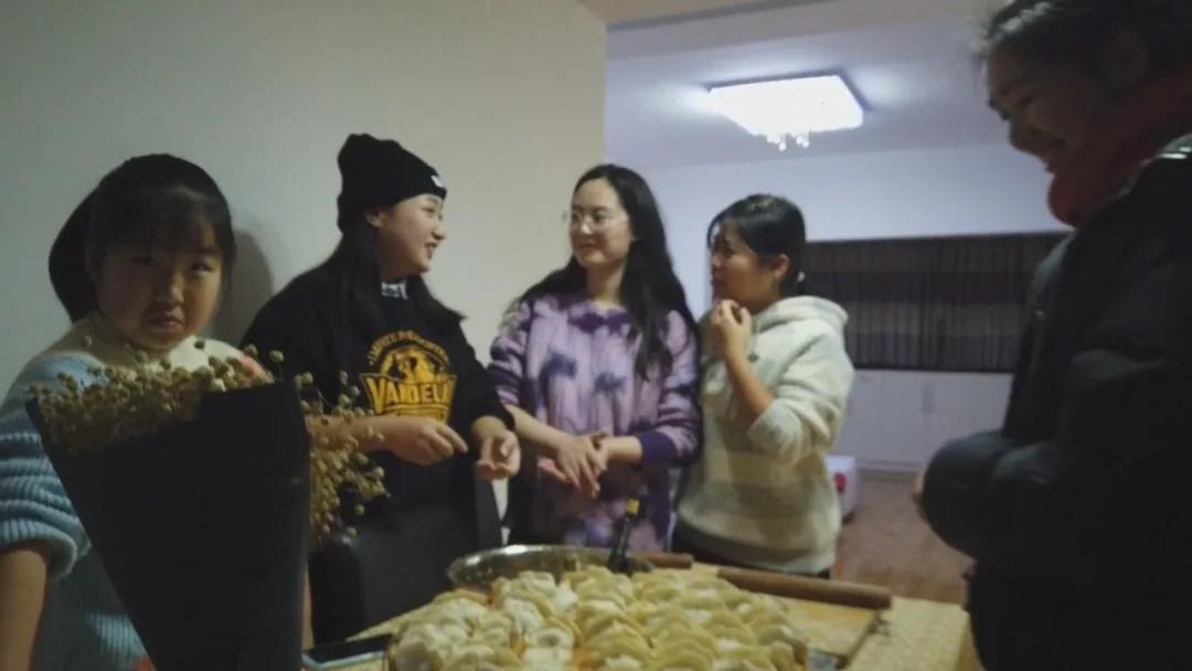 大家围在一起包包饺子、聊聊天