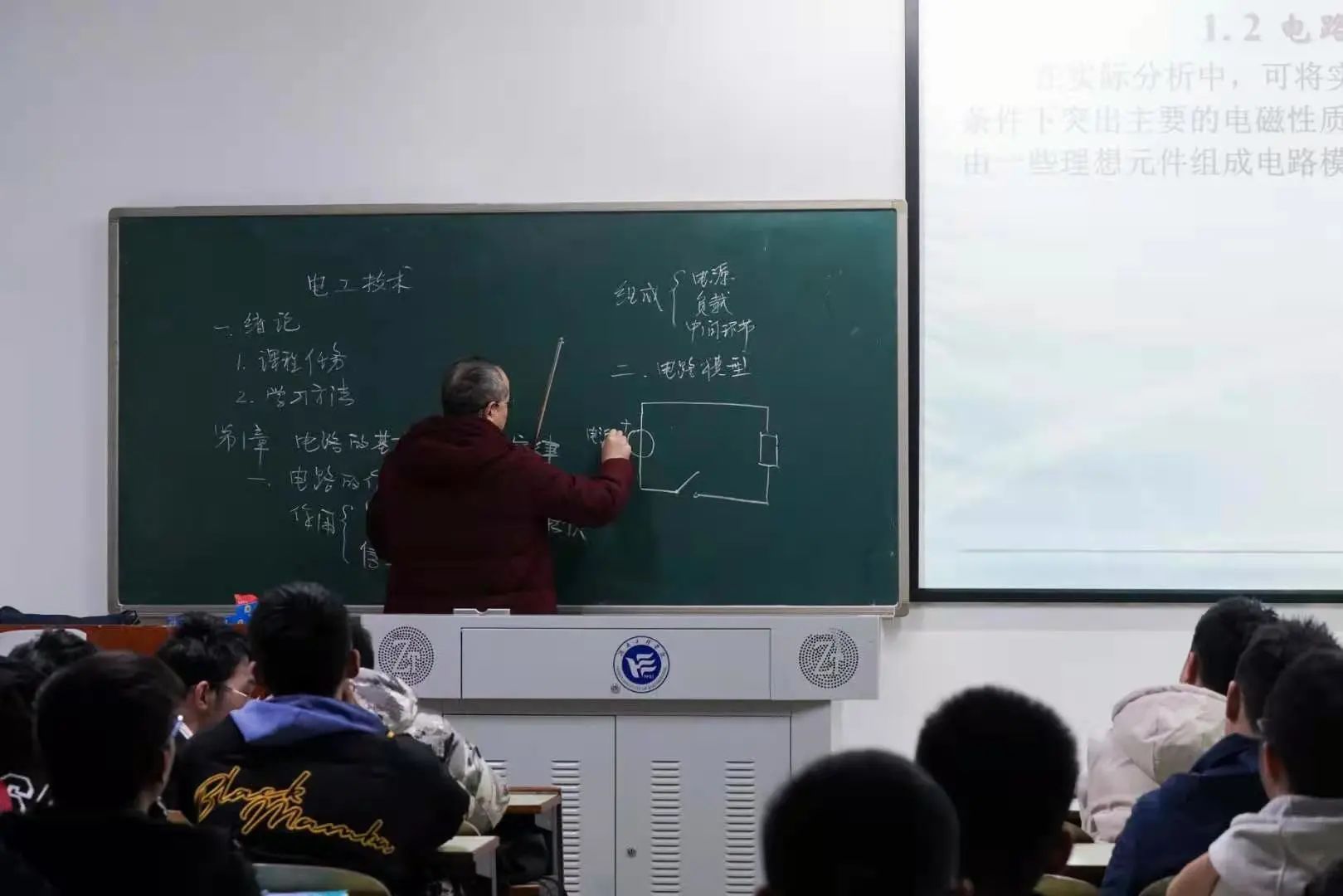 讲台上的老师握着粉笔,黑板上映出知识的烙印。