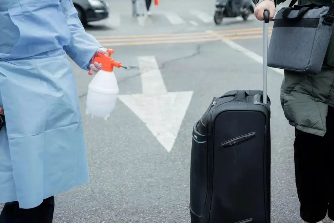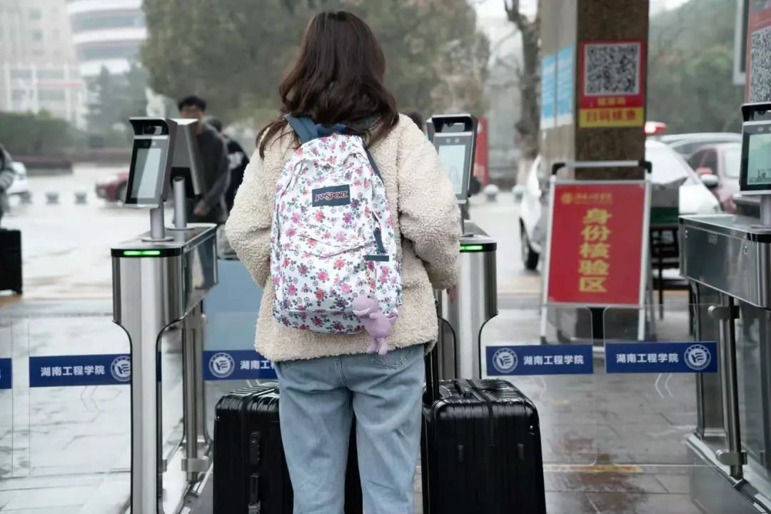 疫情未散,防疫仍不能松懈。返校学生佩戴口罩,工作人员辛勤地履行职责:进行入校体温检测,查看每一位同学的健康码和行程码,给行李消毒,温馨守护,为爱护航。