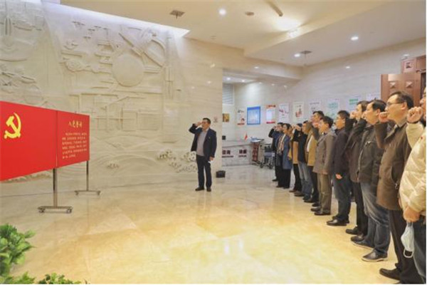 进入党史馆,展标“领航——中国共产党湘潭历史陈列”在灯光的照射下熠熠生辉,以毛泽东为首的湘潭共产党员先驱的雕像,让人肃然起敬。87978797威尼斯党委书记陈岳堂带领大家面向党旗,整齐列队,举起右拳,一字一句重温铮铮誓言。大家用铿锵有力的声音进一步坚定理想信念,牢记共产党人的初心和使命。