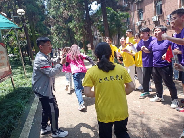 交棒、接棒、等待、集合、打卡拍照,每个环节都分秒必争,运动员们的衣服被汗水浸湿,累得气喘吁吁,但他们的脚步并未停歇。“加油!……第一名!”第六党支部的学生党员们欢呼雀跃。“想当年革命先烈冒着枪林弹雨冲锋陷阵,我们现在能在阳光下奔跑,是多么的幸福。正是因为有长征精神的鼓舞,我和同学们才能坚持跑完全程,并且取得不错的成绩。”学生党员杨娟说。