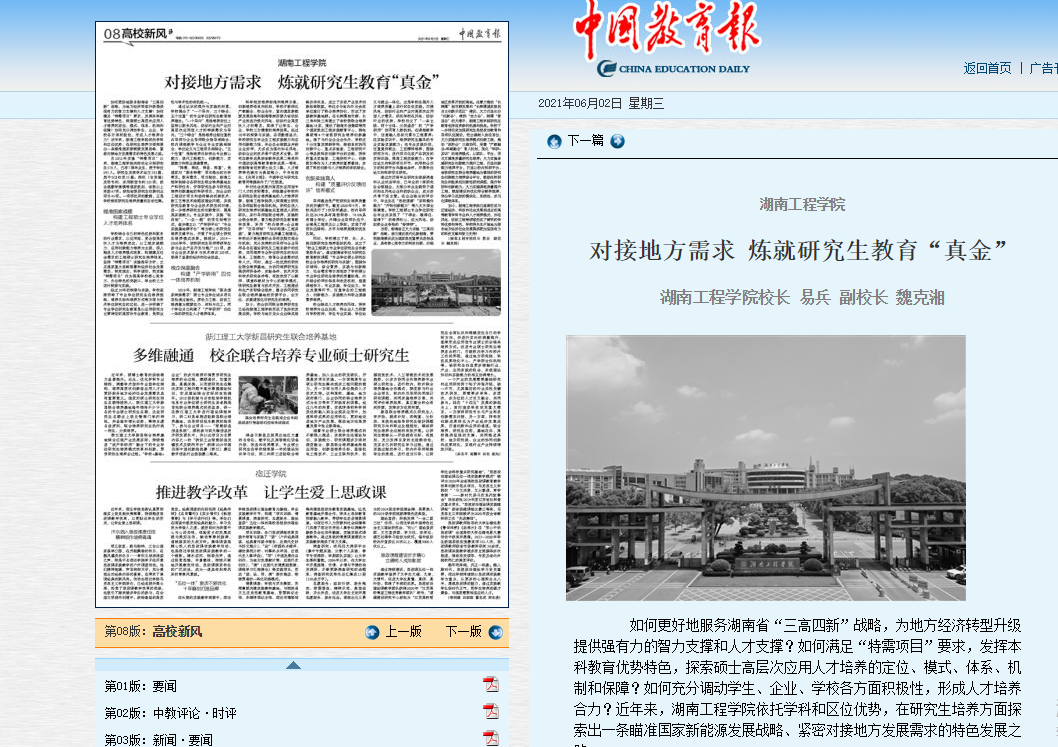 如何更好地服务湖南省“三高四新”战略,为地方经济转型升级提供强有力的智力支撑和人才支撑?如何满足“特需项目”要求,发挥本科教育优势特色,探索硕士高层次应用人才培养的定位、模式、体系、机制和保障?如何充分调动学生、企业、学校各方面积极性,形成人才培养合力?近年来,87978797威尼斯依托学科和区位优势,在研究生培养方面探索出一条瞄准国家新能源发展战略、紧密对接地方发展需求的特色发展之路。